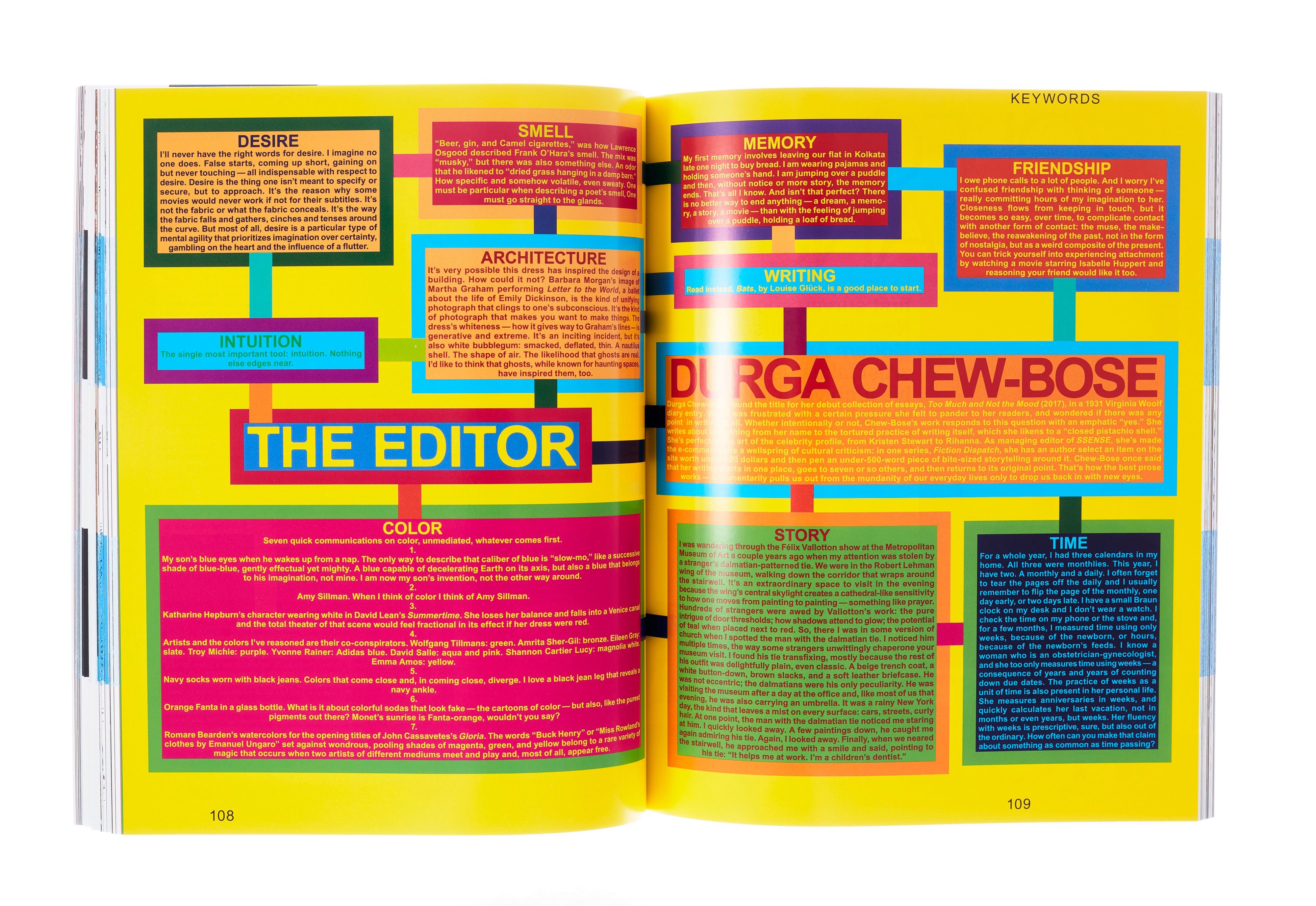 Durga Chew-Bose found the title for her debut collection of essays, Too Much and Not the Mood (2017), in a 1931 Virginia Woolf diary entry. Woolf was frustrated with a certain pressure she felt to pander to her readers, and wondered if there was any point in writing at all. Whether intentionally or not, Chew-Bose’s work responds to this question with an emphatic “yes.” She writes about everything from her name to the tortured practice of writing itself, which she likens to a “closed pistachio shell.” She’s perfected the art of the celebrity profile, from Kristen Stewart to Rihanna. As managing editor of SSENSE, she’s made the e-commerce site a wellspring of cultural criticism: in one series, Fiction Dispatch, she has an author select an item on the site worth under 500 dollars and then pen an under-500-word piece of bite-sized storytelling around it. Chew-Bose once said that her writing starts in one place, goes to seven or so others, and then returns to its original point. That’s how the best prose works — it momentarily pulls us out from the mundanity of our everyday lives only to drop us back in with new eyes.