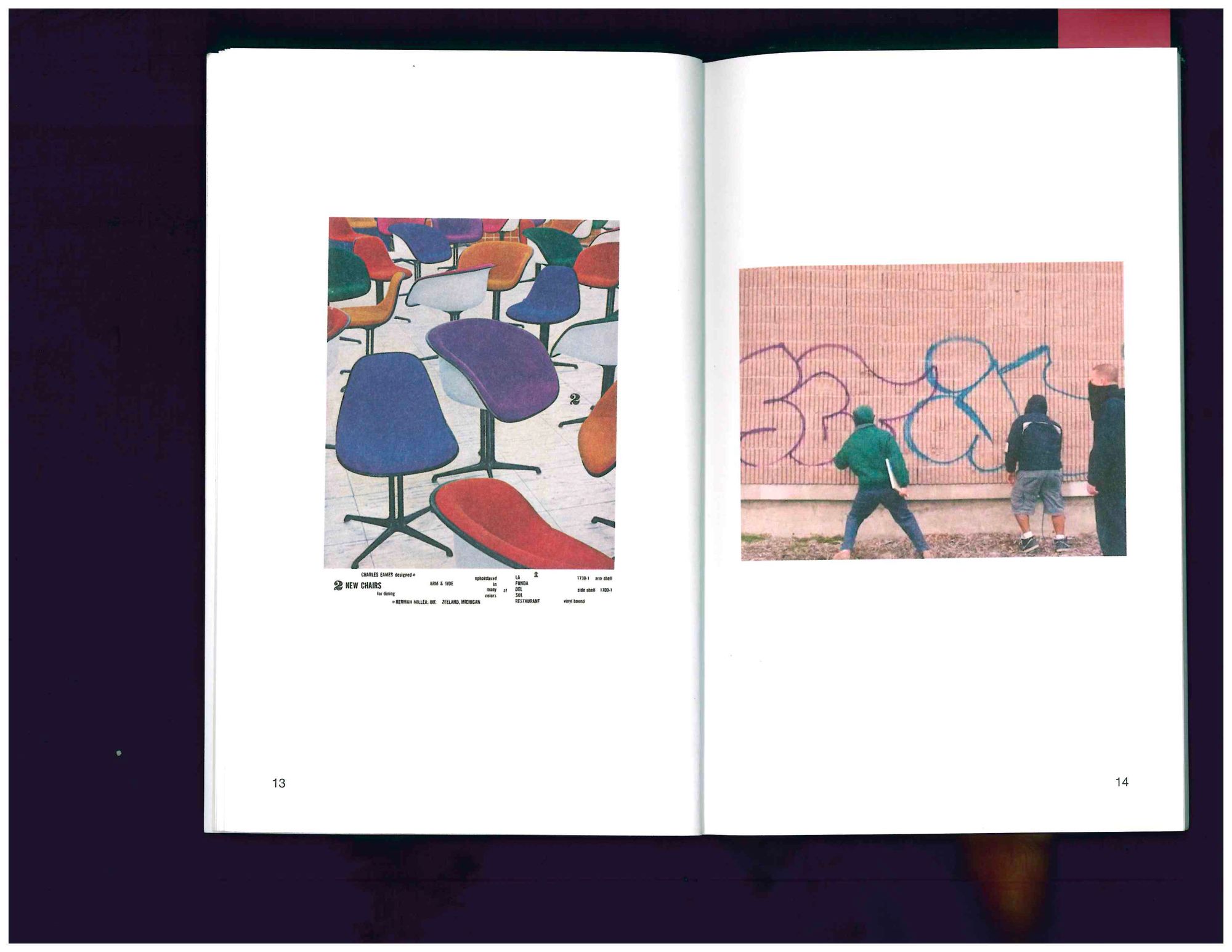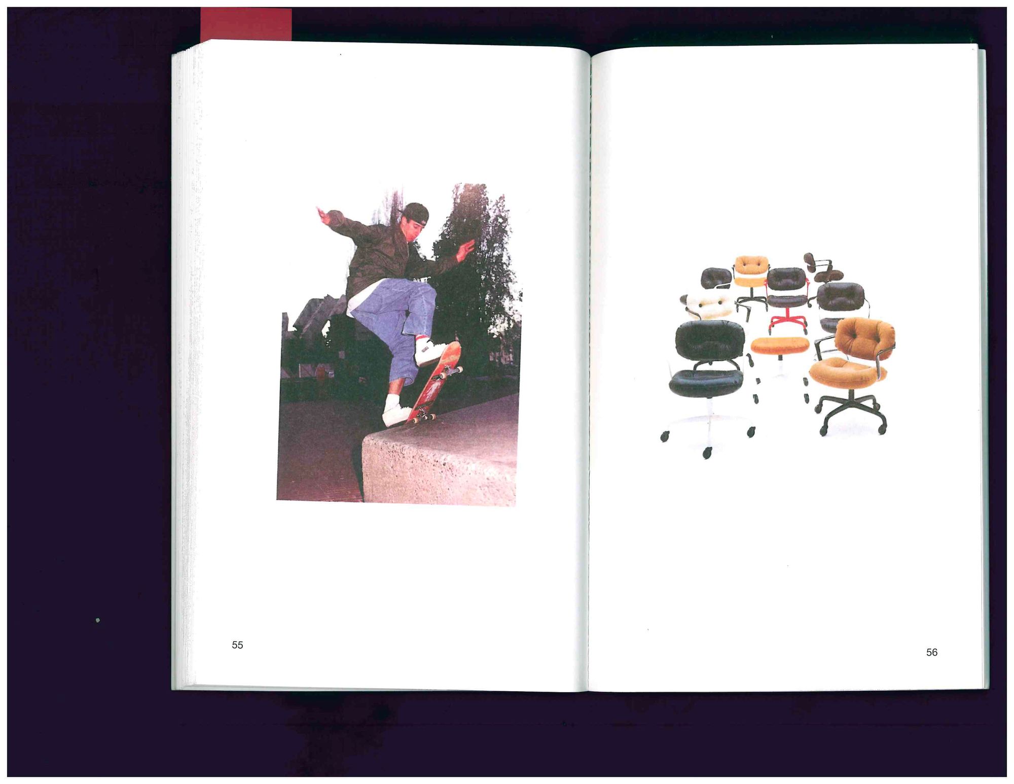 It’s the most powerful for me. The book contains images I’ve been observing for a long time, some as far back as the early 90s. But I began the collection in 2006, the year I founded my office. I created a folder on my desktop called seeing where I dumped anything that spoke to my heart and brought me joy. On rainy days, or if I was getting frustrated about work, I would open it up and look at the images. For a long time it was only design images — I had other folders for graffiti and for skateboarding. At one point I decided my interests had to be whole, that accepting their totality was the only way to be honest with myself, so I dumped all the images into one folder, which made a big mess. To launch my book Selected Works we hosted a dinner in my friend Andrea Lenardin [Madden]’s airplane hangar at Whiteman Airport in Pacoima. She asked me for images to project on the wall, so I gave her the seeing folder, which had never been shown before. Andrea decided to use two projectors to pair images against each other, but the selection was random. That night, watching the slides playing quietly in the background over dinner, it occurred to me that all these images form a consistent visual language — my universe. For the book version of Seeing I decided to make the image pairings more intentional, for example placing [professional skateboarder] Keenan Milton next to Francesca Breuer [daughter of Marcel Breuer]. Milton is shown skating on a Los Angeles schoolyard picnic table in an ad for Chocolate Skateboards — there are thousands of these tables in L.A. schools, with fiberglass tops and sheet-metal bases, and they’ve become iconic in the world of skateboarding. The young Francesca Breuer is also shown in an advertisement, for Knoll, sitting on a Cesca at the Breuers’ home in Connecticut. Both the picnic table and the chair choreograph the bodies and postures of Keenan and Francesca, but there is also innovation at play in each image. Keenan does a switch frontside crooked nose grind across the picnic table, perhaps an NBD trick at the time [NBD is a skateboarding acronym for “never been done”], and it’s debated whether Breuer or Mart Stam designed the first cantilevered chair, also an NBD. Both design and skateboarding have this drive to plant a flag, to do the impossible. Seeing underscores many of the overlaps between these seemingly disparate cultures I grew up in.