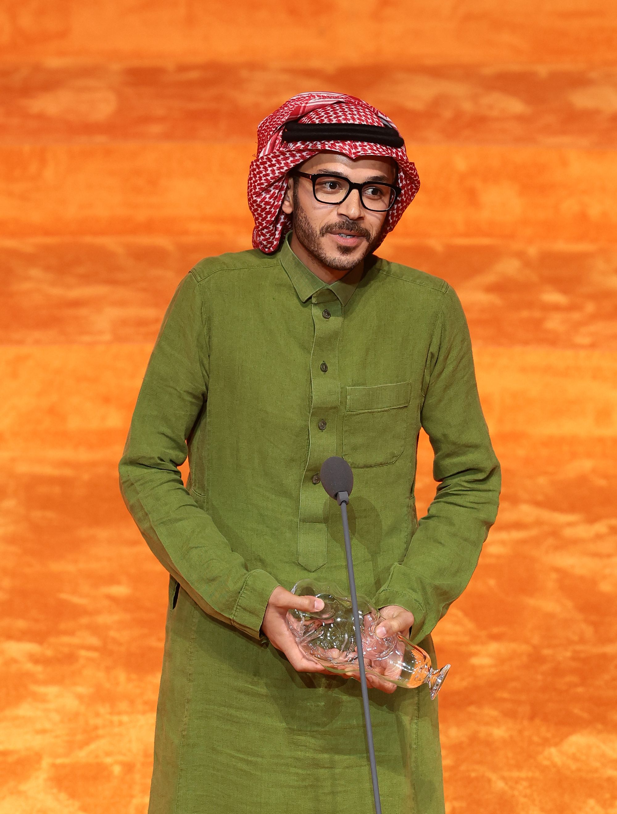 Mohammad Al Faraj, recipient of the Emerging Artist Award. Courtesy of the Art Basel Awards. Photo by Dimitrios Kambouris/Getty Images for Art Basel.