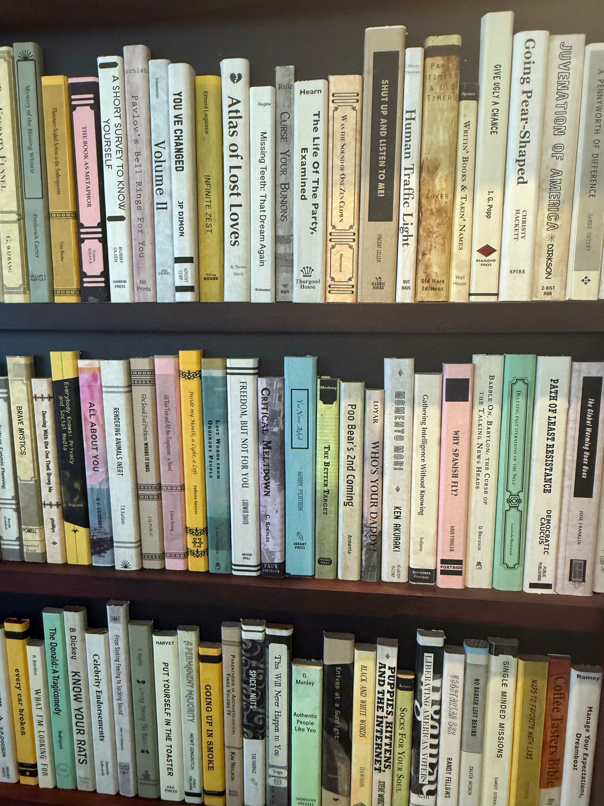 Detail of The Last Library IV: Written in Water (2025), an installation by Ward Shelley and collaborators. Paper, ink, and wood. Courtesy Freight+Volume, New York