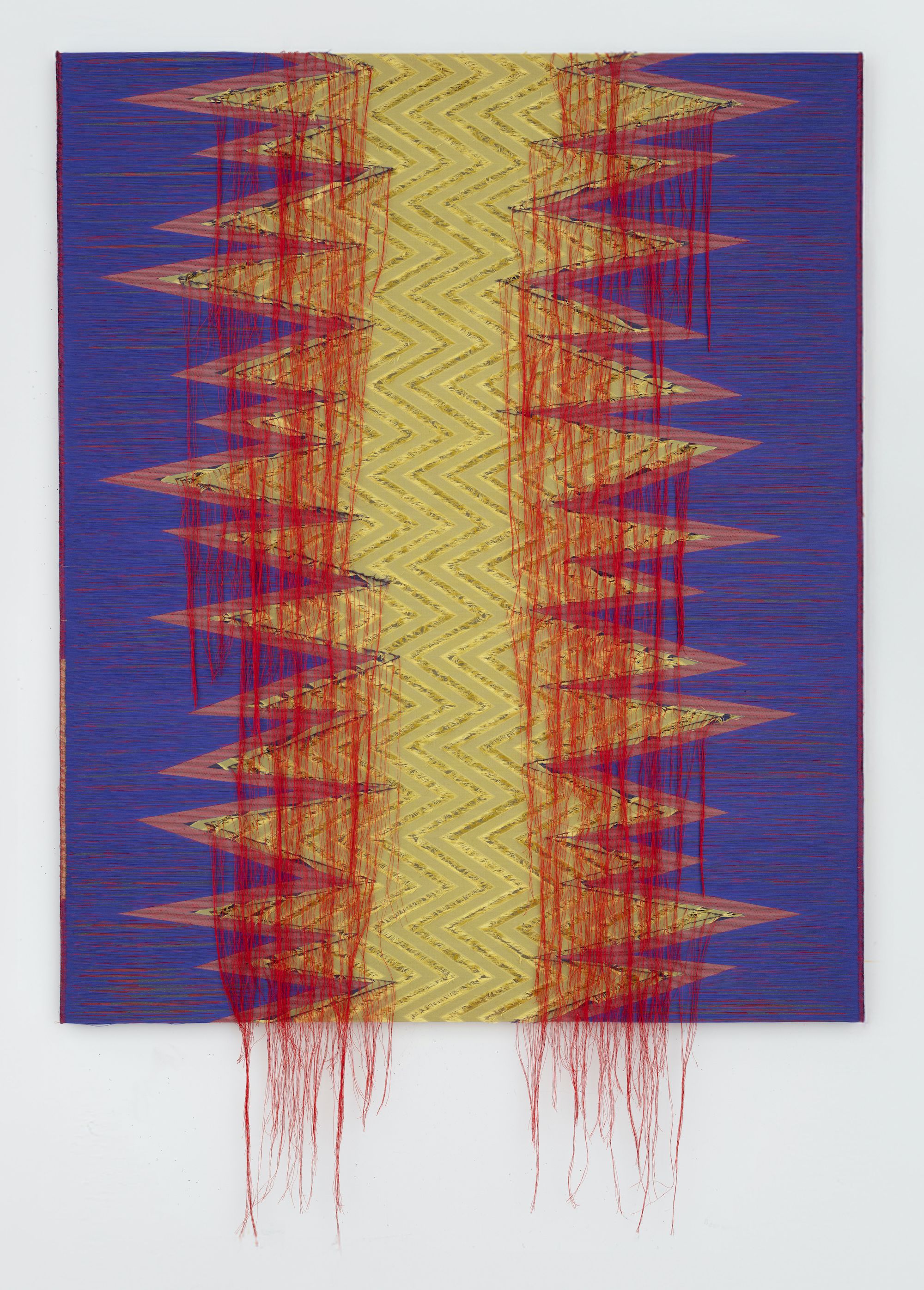 Liz Collins, This Year, 2025; Linen, polyester, and silk. Courtesy Candice Madey Gallery, New York.