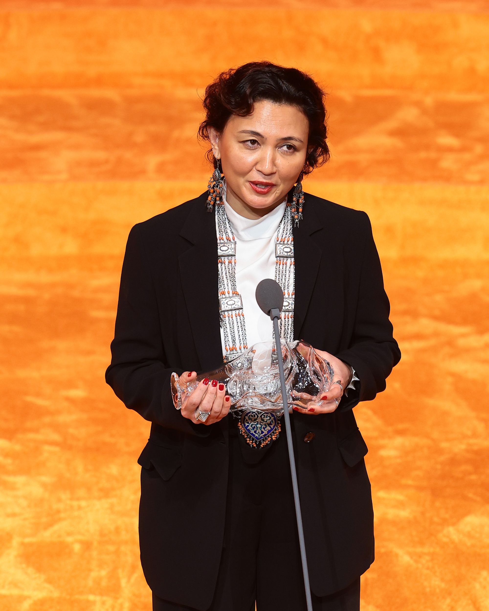 Saodat Ismailova, recipient of the Emerging Artist Award. Courtesy of the Art Basel Awards. Photo by Dimitrios Kambouris/Getty Images for Art Basel