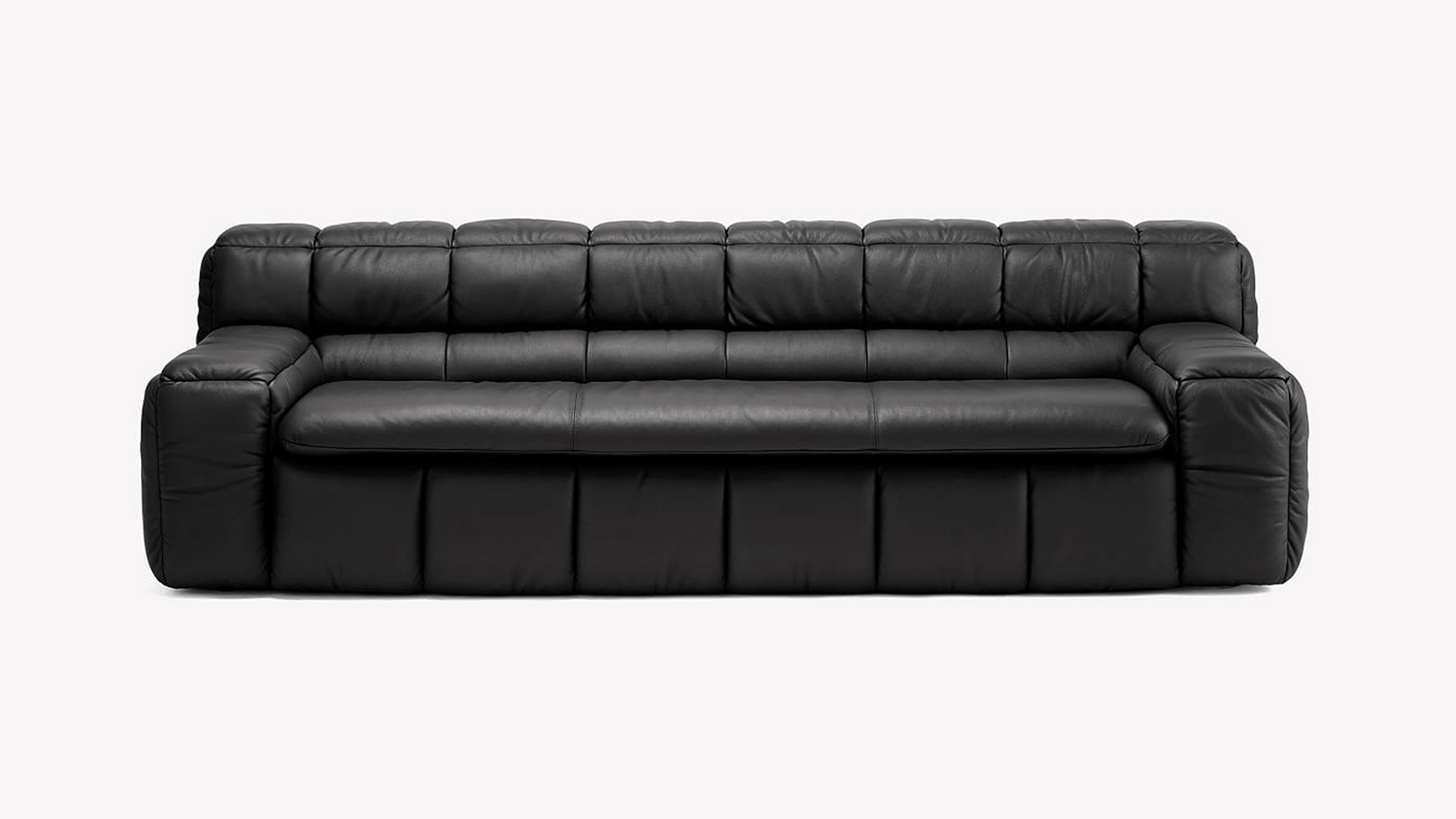 JB: The original leather was not in production anymore, so that’s something we had to take into account as well. The new leathers don’t ruche the same way. So the material was another wrinkle — no pun intended — in figuring out how to make these again. The question of color was also a big consideration. Most cars you see on the street are probably the same five colors, and companies will get spicy with two more unexpected colors. That’s how we started thinking about it. What are the A and B colors that resonate the most with people, and then what’s the one novelty color that’s the bolder choice? That’s how we decided on the orange one — you don’t really see a new rust-colored sofa that often. It’s got a new form, but the color treads a thin line between vintage and retro.