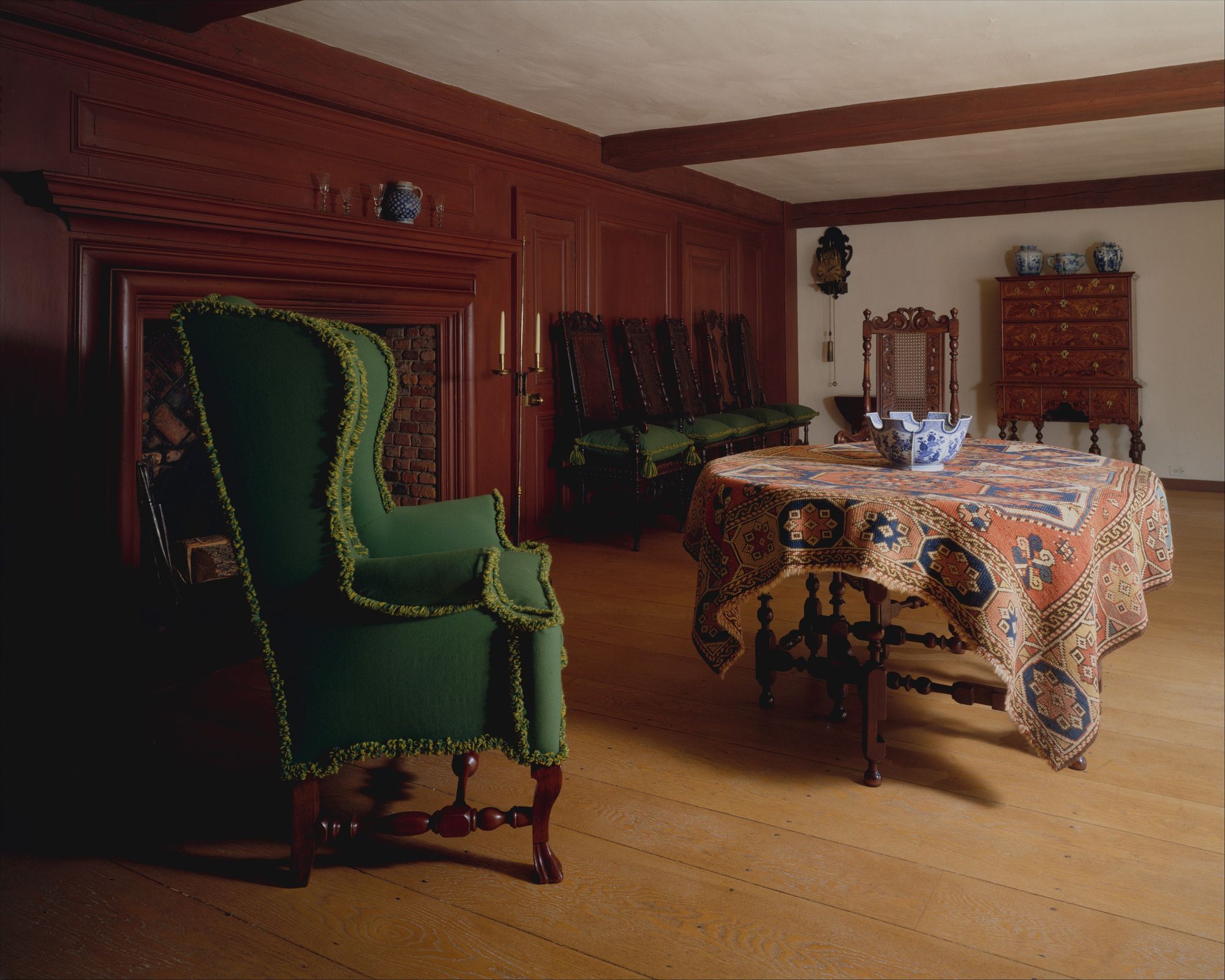 In the decades following Halsey’s tenure, critics began questioning the project’s foundational logic. In the 1960s, a growing activist historic-preservation movement made people aware that it was preferable to keep entire buildings intact rather than extract elements of them, and as a result, period rooms were sidelined in curatorial practice for decades. Scholars and critics began to interrogate the constructed nature of the rooms, with their varying levels of authenticity and interpretation, and a wave of sociohistorical critique began reshaping the contours of the entire pursuit. By the 1980s, “the darlings of early 20th-century American art museums [had] become their hated stepchildren,” as historian Ivan Gaskell wrote in 2004. It was in this climate that Amelia Peck, longtime curator of the American Wing, arrived at the Met in 1980. Her first role was assisting the installation of the Frank Lloyd Wright room. True to form, the Met was slower than some other institutions to register the shifting currents in historic preservation and museum interpretation. There was, in fact, very little context publicly available at all. Labels consisted of little more than the house name, date, and donor. There was no explanation of why the rooms looked the way they did, who lived in them, or how the Met had acquired them.