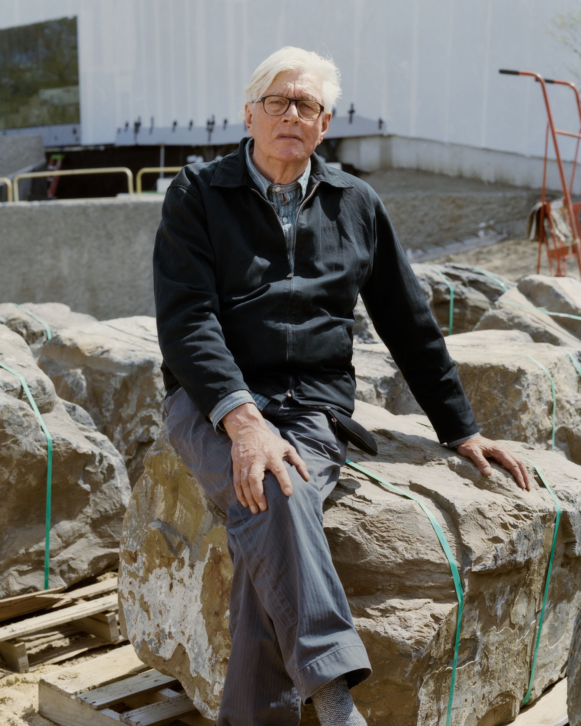 Piet Oudolf on the site at the in-progress Calder Gardens in Philadelphia, a landscape he designed. Portrait by Michael Cukr for PIN–UP.