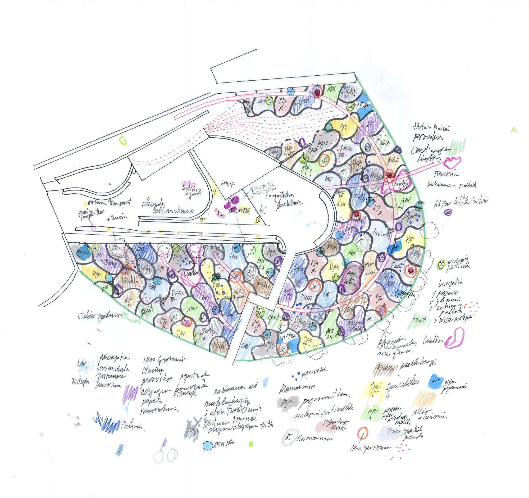 Oudolf's landscape plan for the Calder Gardens in Philadelphia. Courtesy of Piet Oudolf.