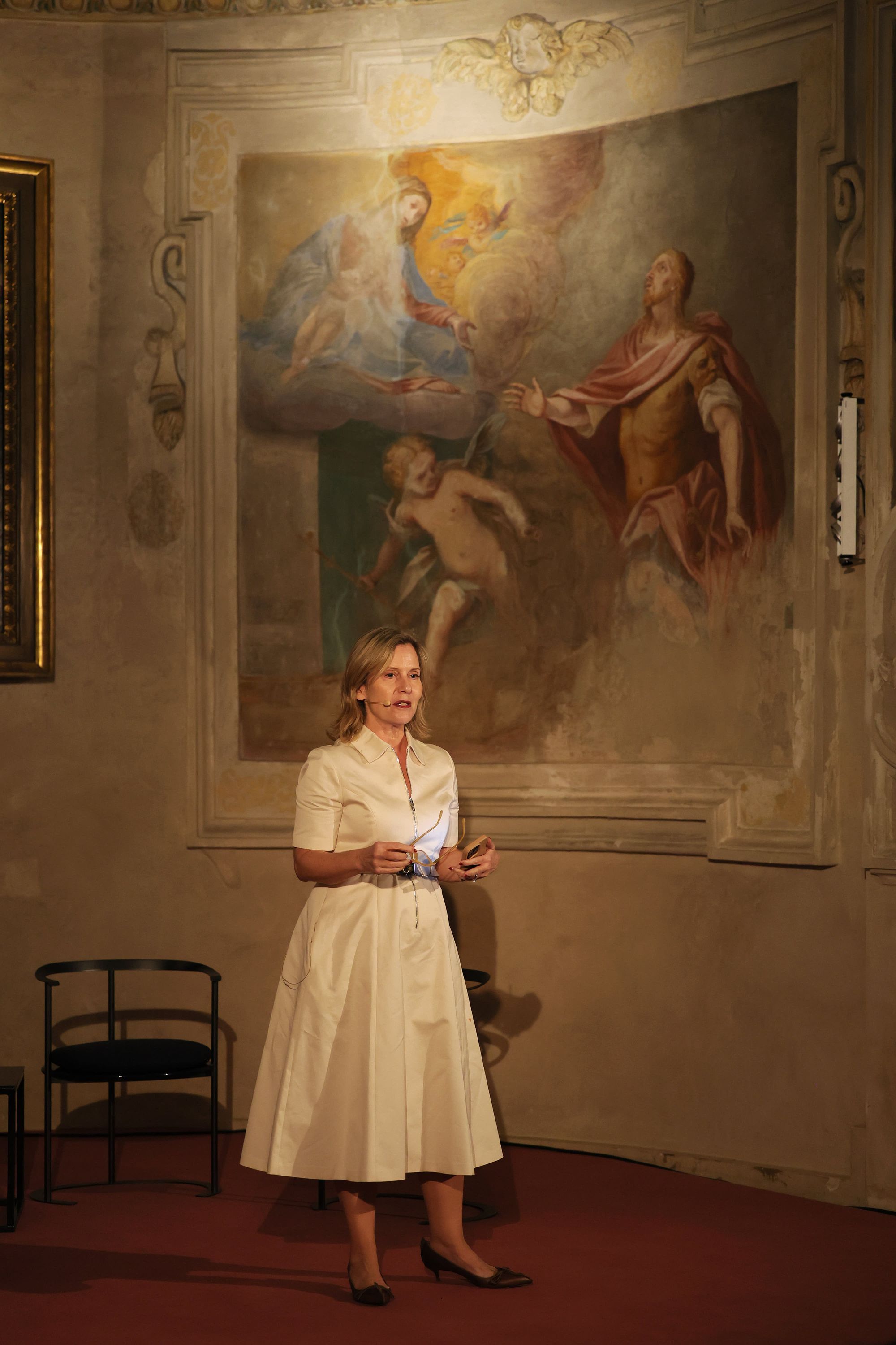 There is an irony in the choice of venue that wasn’t lost on visitors. Santa Maria delle Grazie sits directly opposite Casa degli Atellani, now owned by LVMH’s Bernard Arnault, placing Prada’s symposium on the politics and power of images quite literally across the street from its greatest luxury rival. During a Milan Design Week increasingly powered by luxury branding and image-making, the setup was almost too perfect: one of fashion’s most sophisticated image machines convening a conversation about images within eyeshot of another. A contradiction, a provocation, or possibly both.