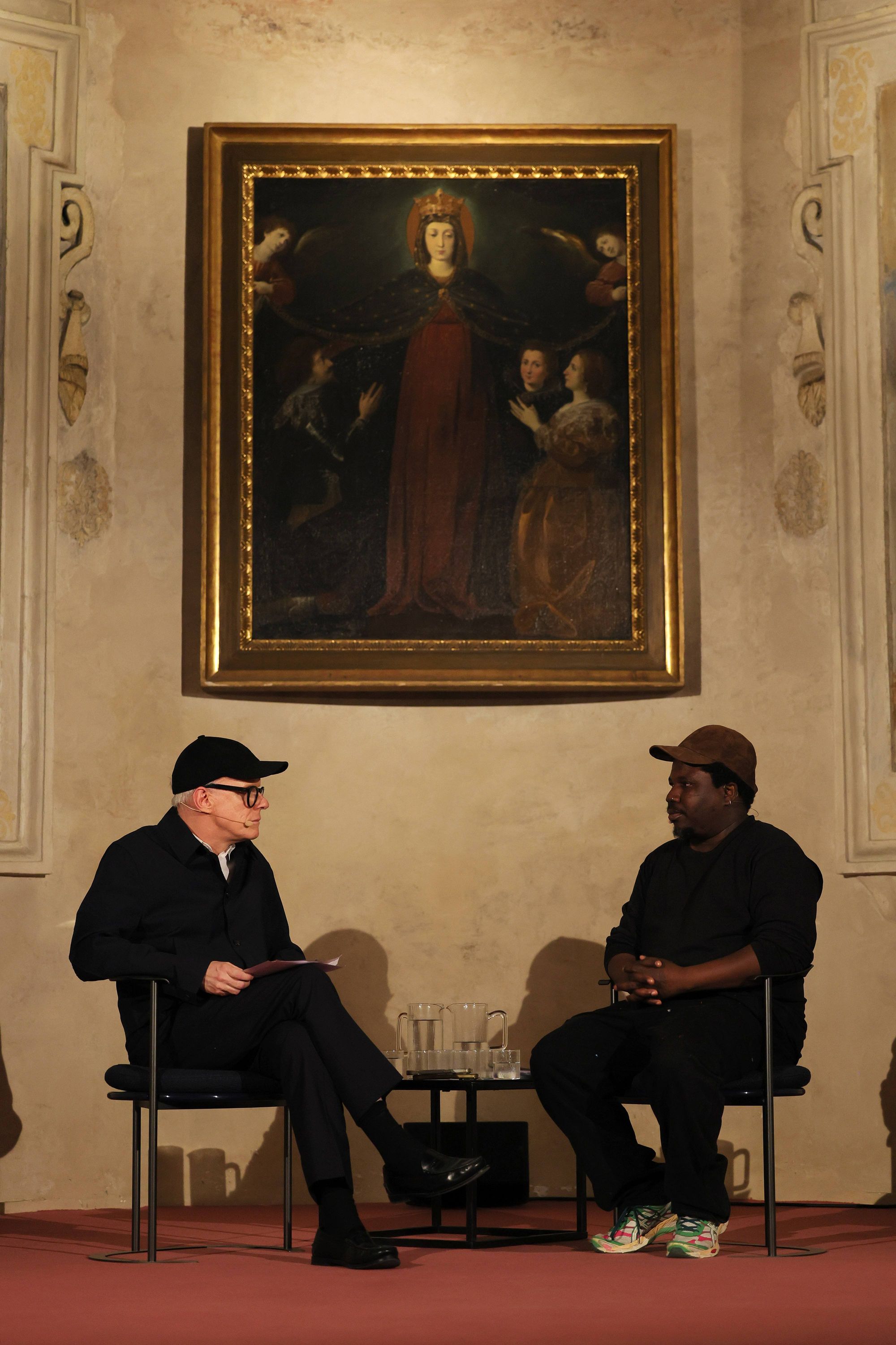 Hans-Ulrich Obrist and Alvaro Barrington at Prada Frames "In Sight". Courtesy of Prada.