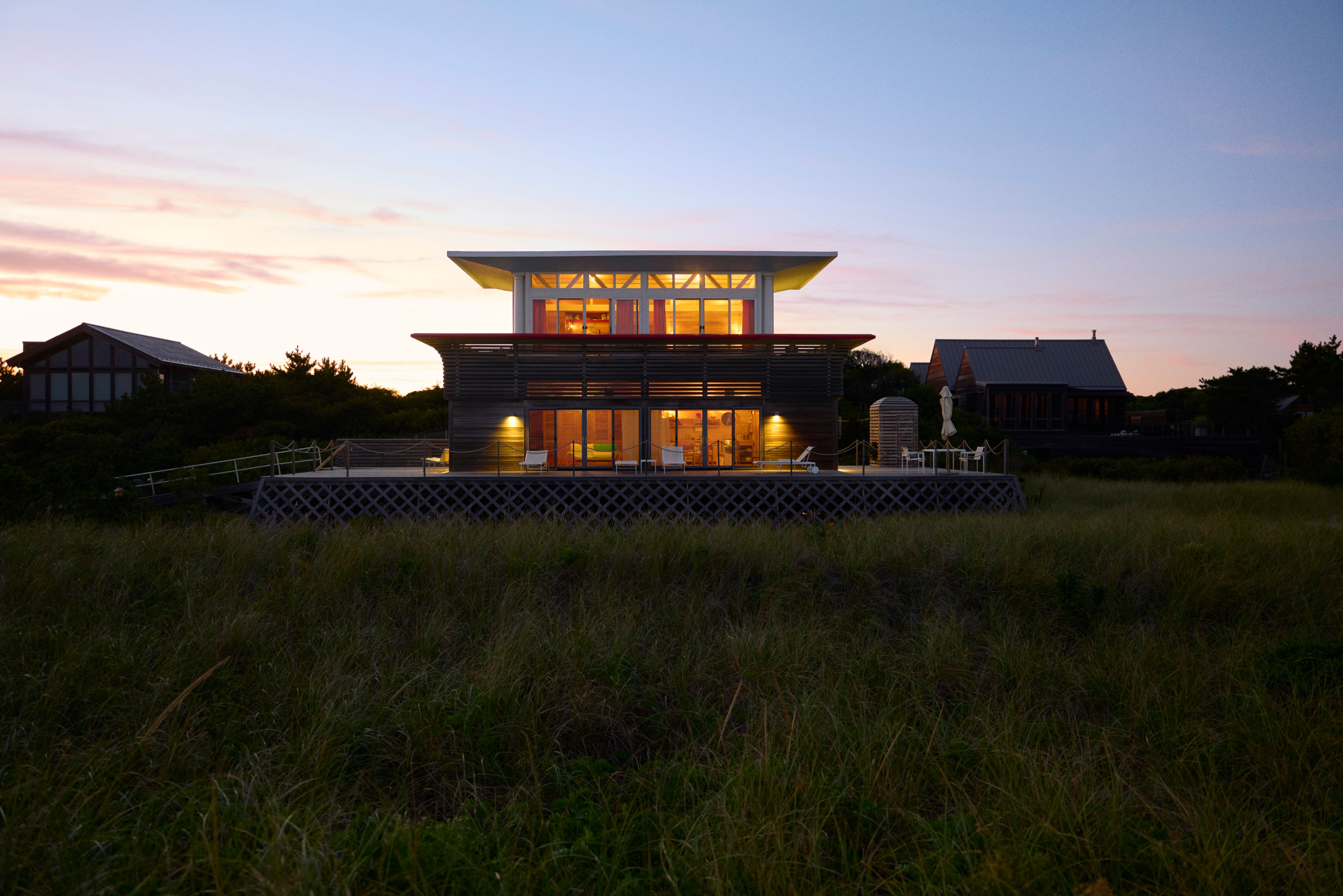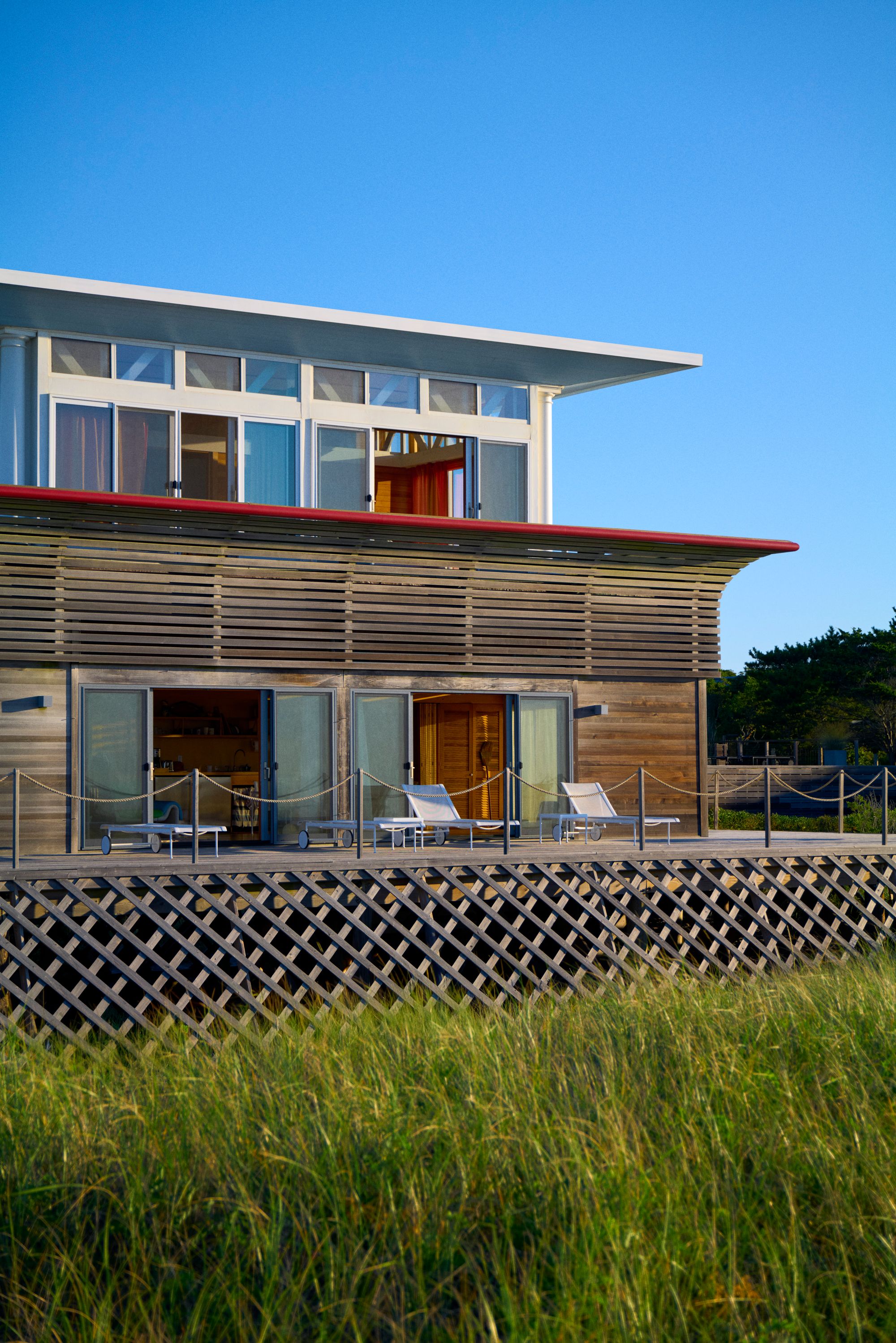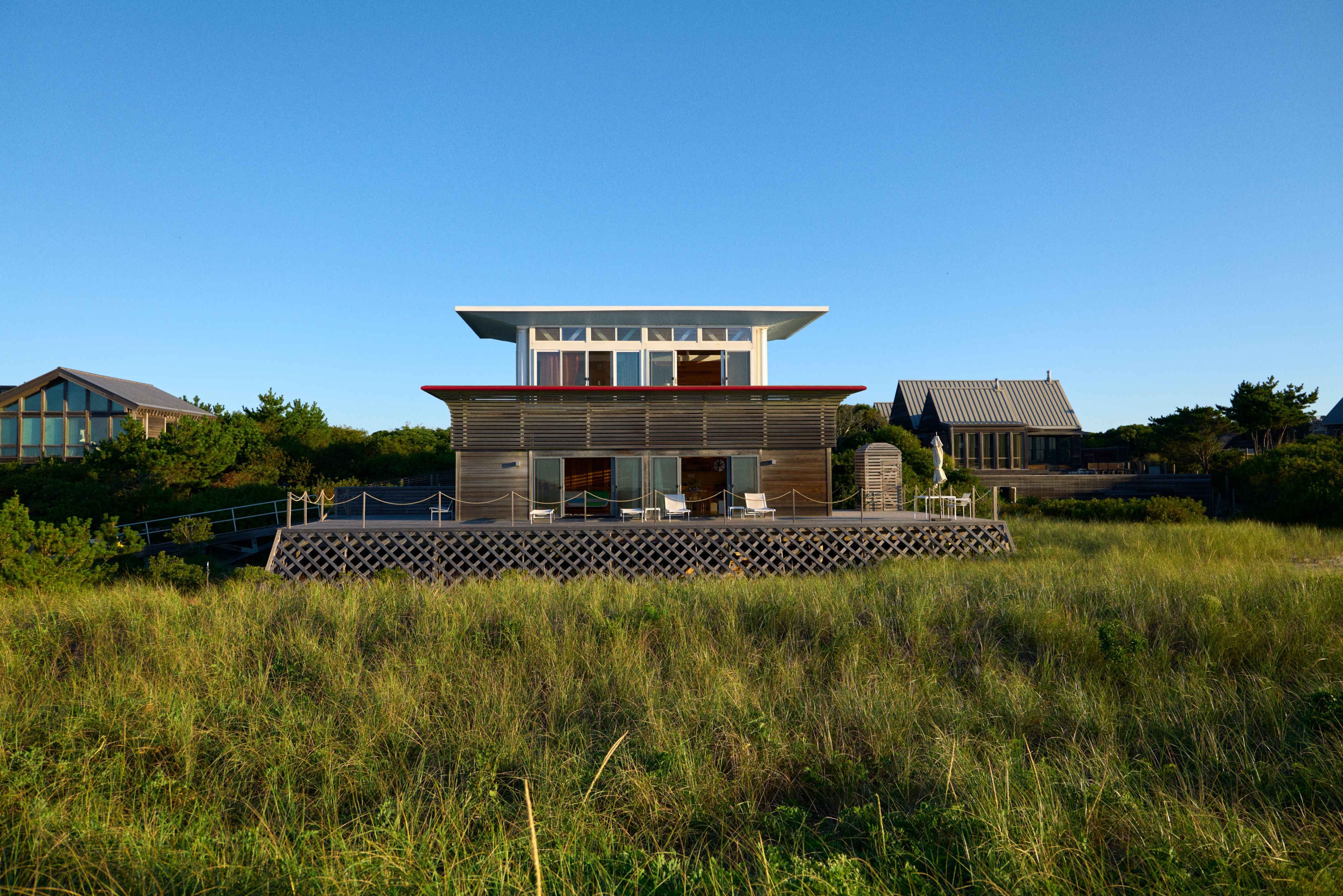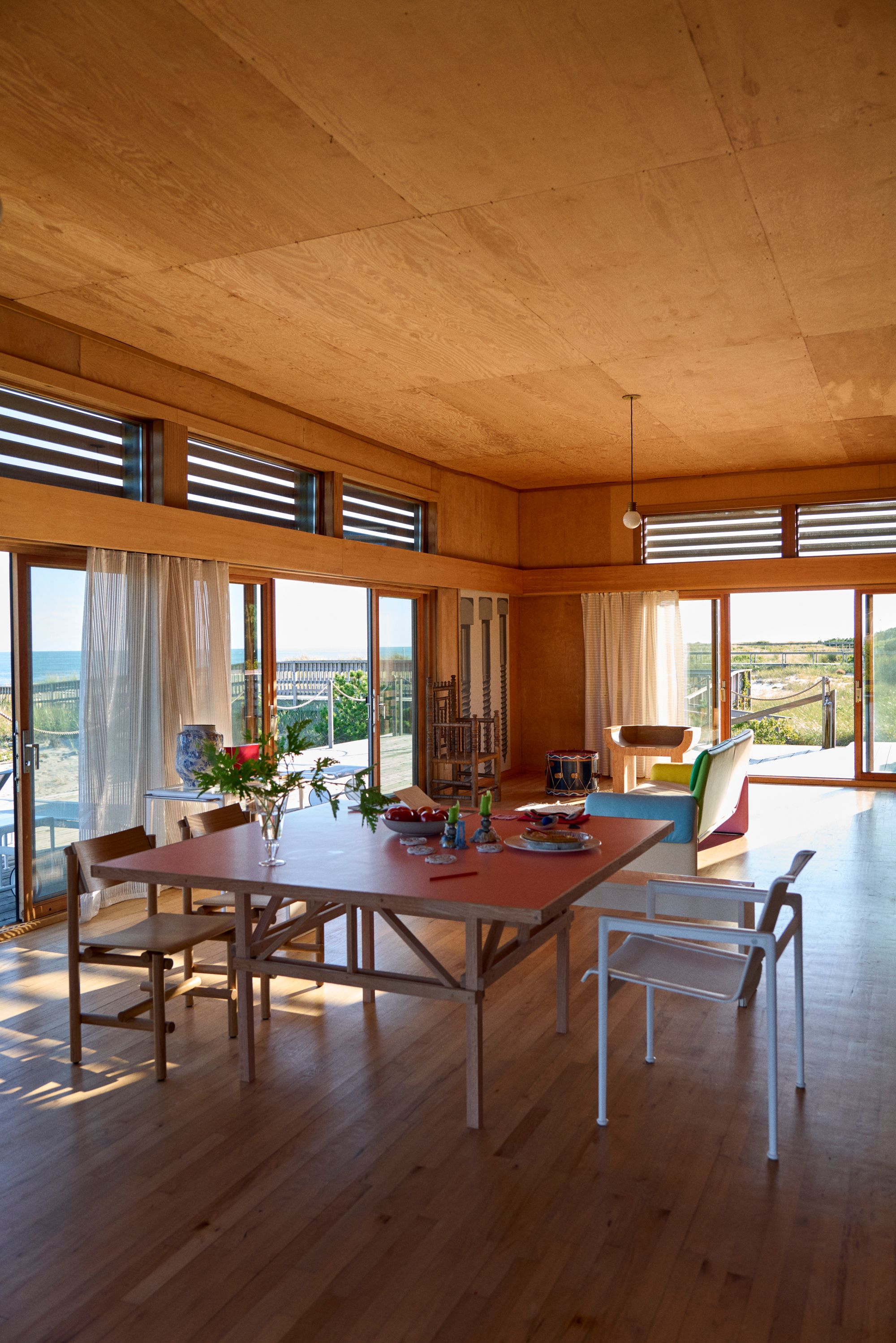 The house was commissioned by David Blum, a lawyer, and his wife, who enjoyed it well into the 21st century, even as the building was falling apart. “There were tarps flying in the wind upstairs,” says the artist Marc Hundley, who led its recent restoration. “But the Blums, who were in their 90s, would just sit out on the deck and look out on the ocean all summer.”