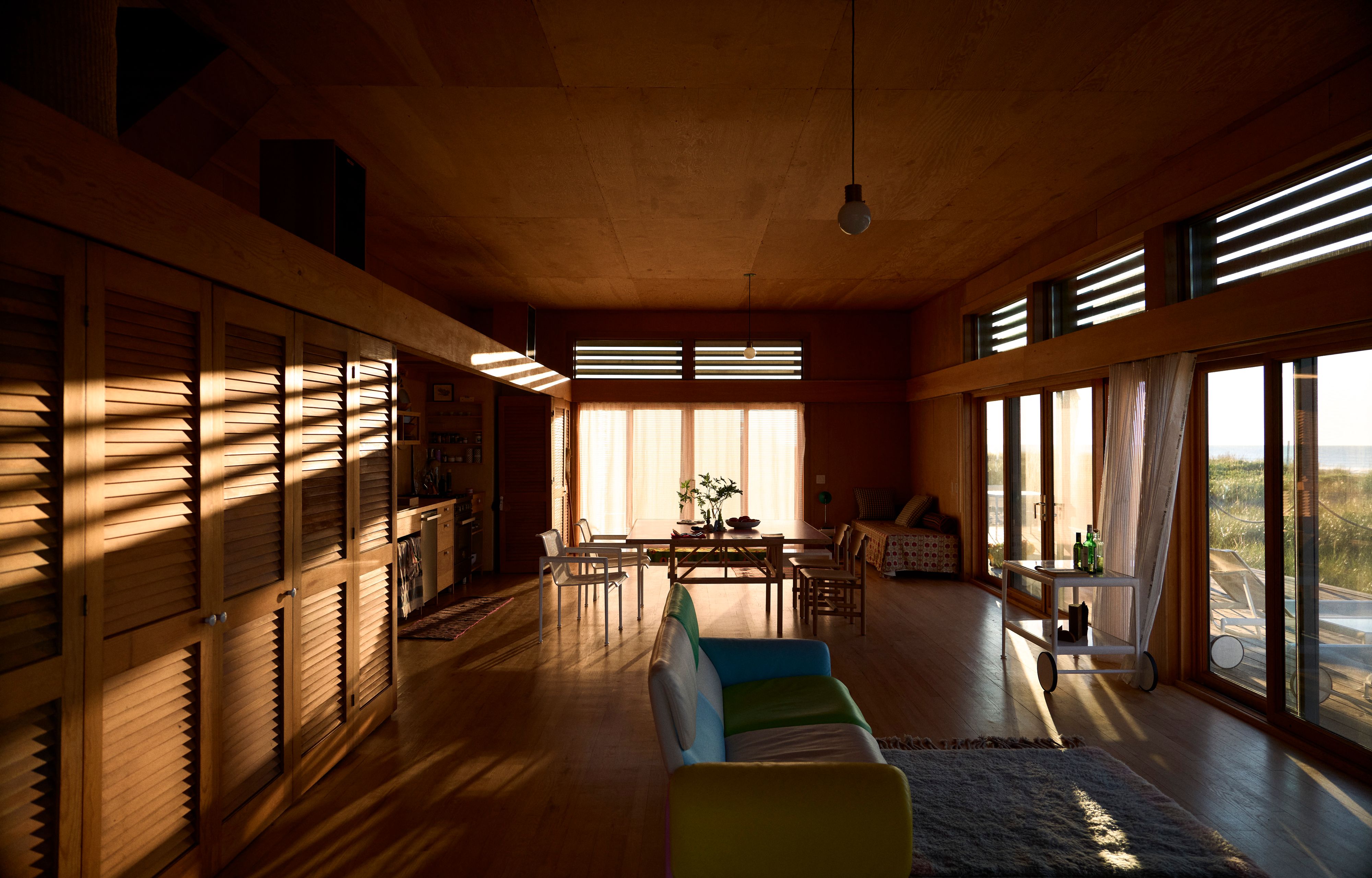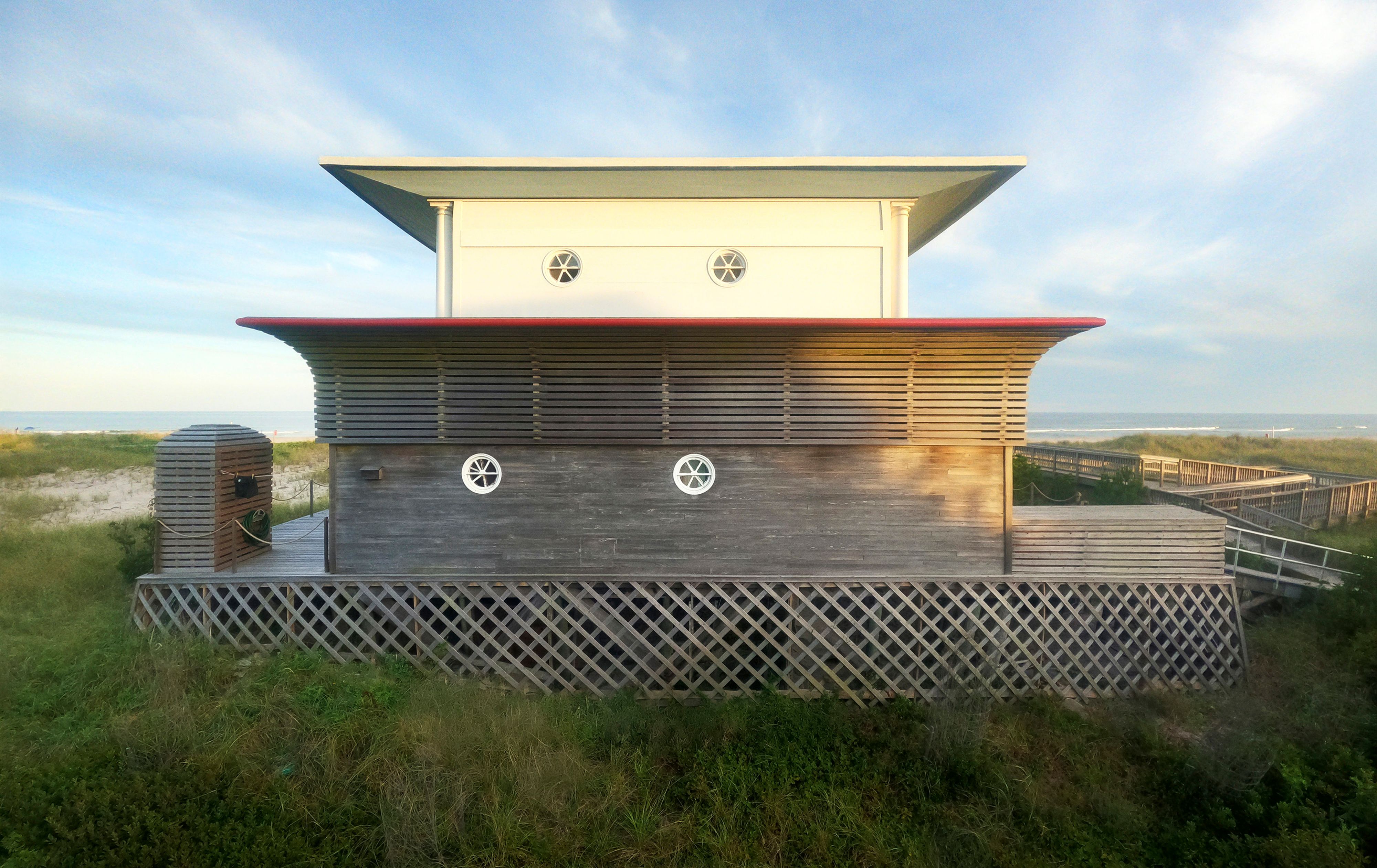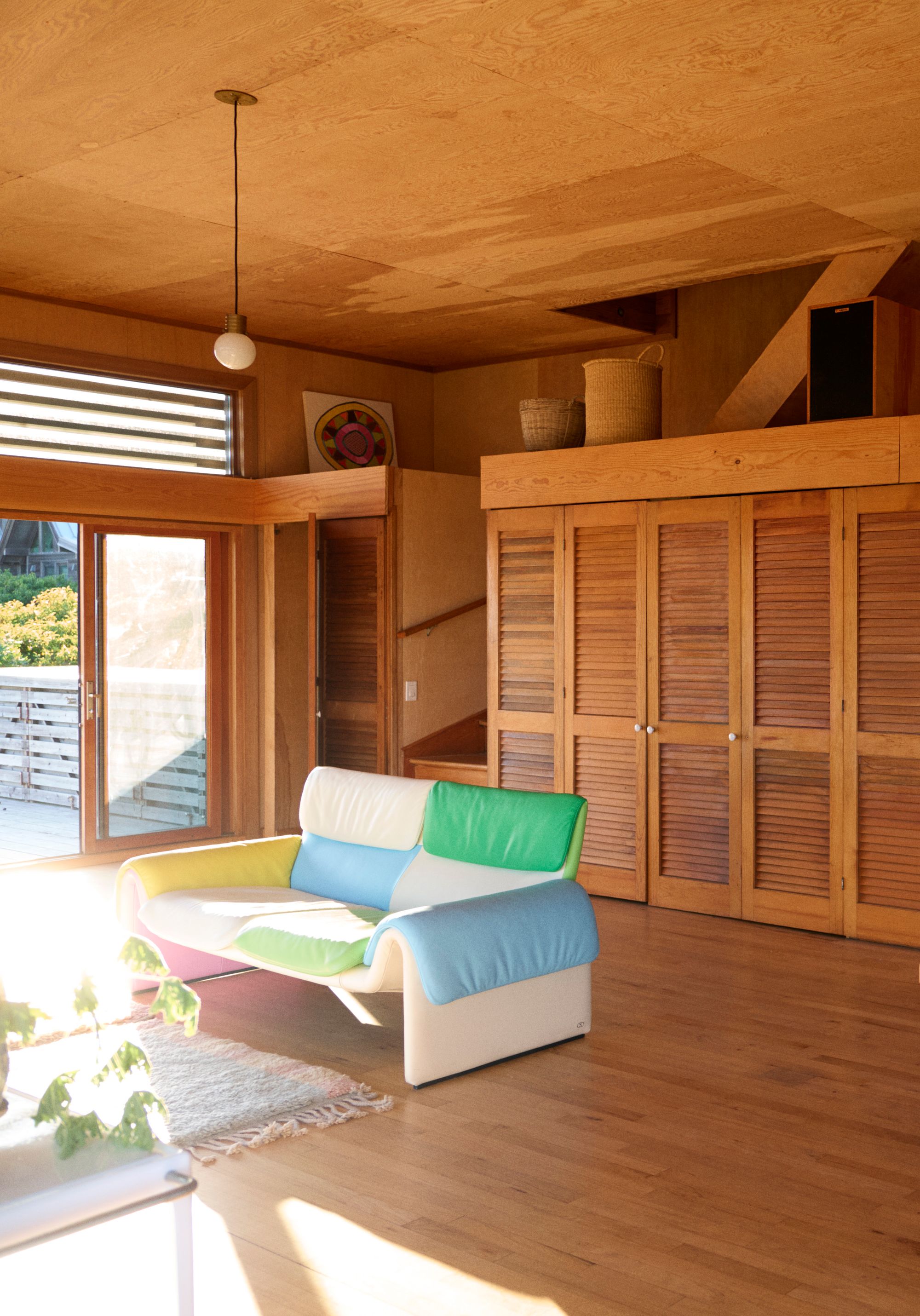 Kfoury, an agent for photographers, stylists, and artists, had already been a summer resident for over 20 years, buying and restoring the nearby Golde House in 2010. He had long admired the Blum house, which sits proudly overlooking the beach, affectionately nicknaming it the Top-Hat House. “It’s a postmodern folly, in a way,” he says. “It has this pagoda roof, these bullseye windows — it’s extravagant, but it doesn’t have hubris.”
