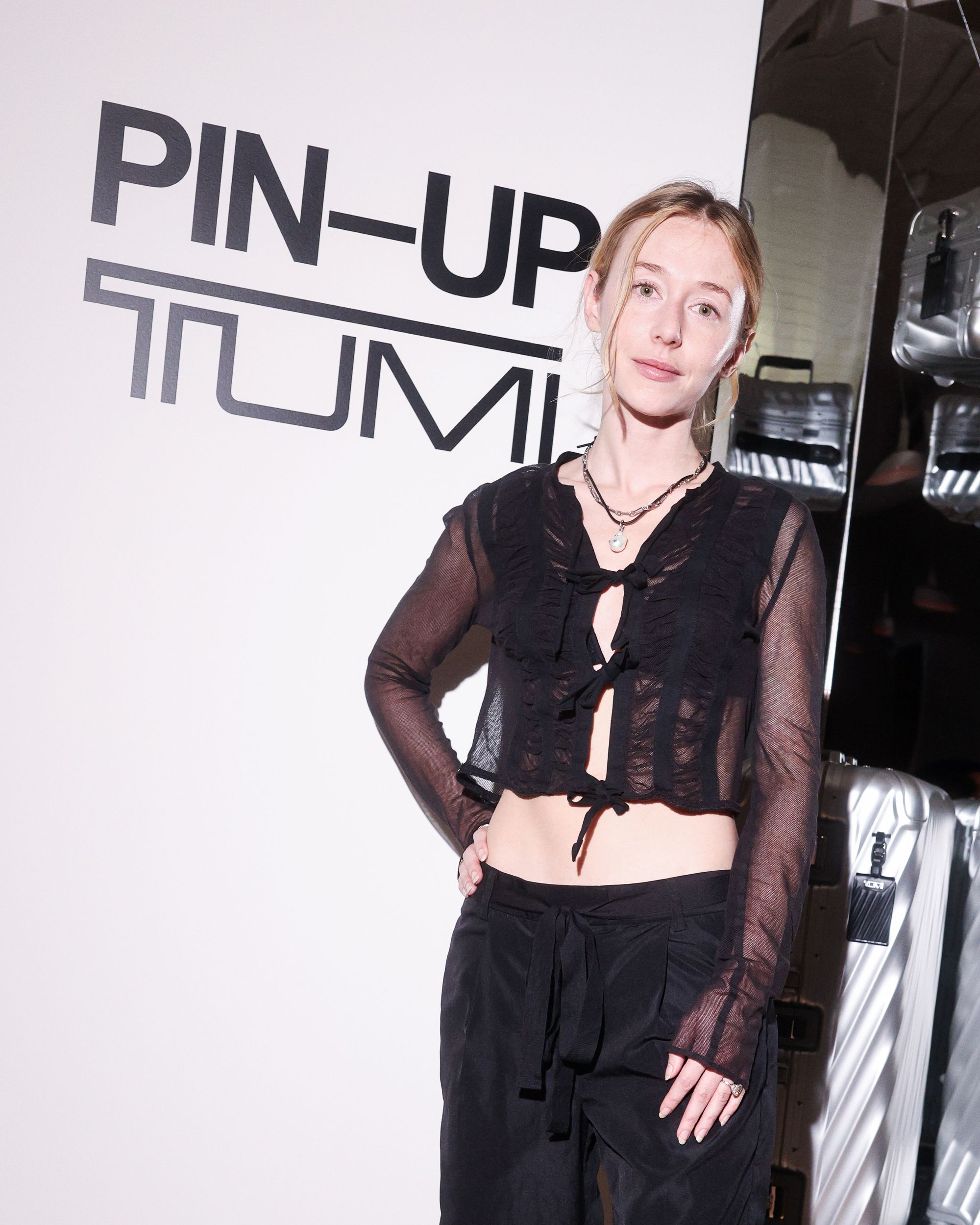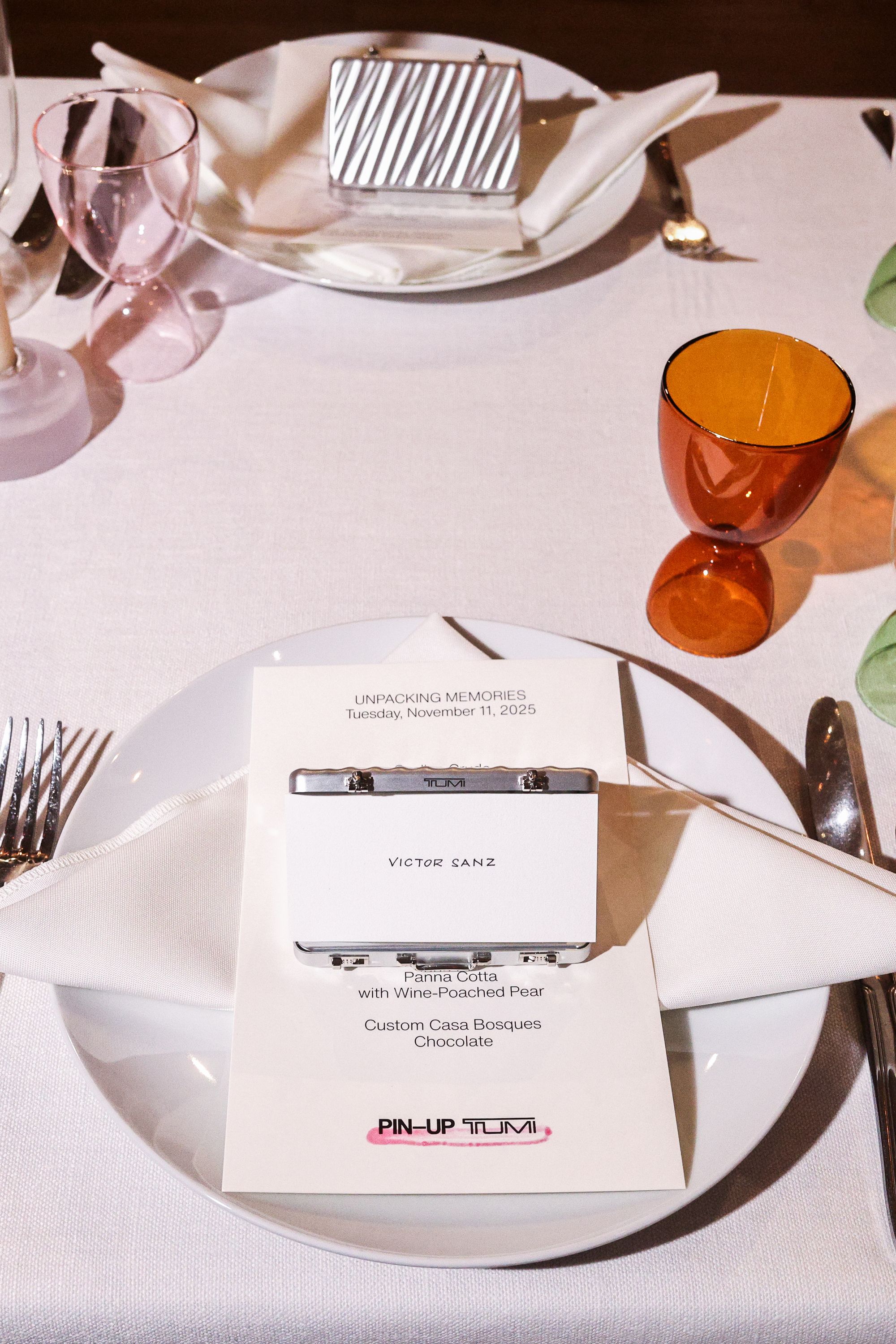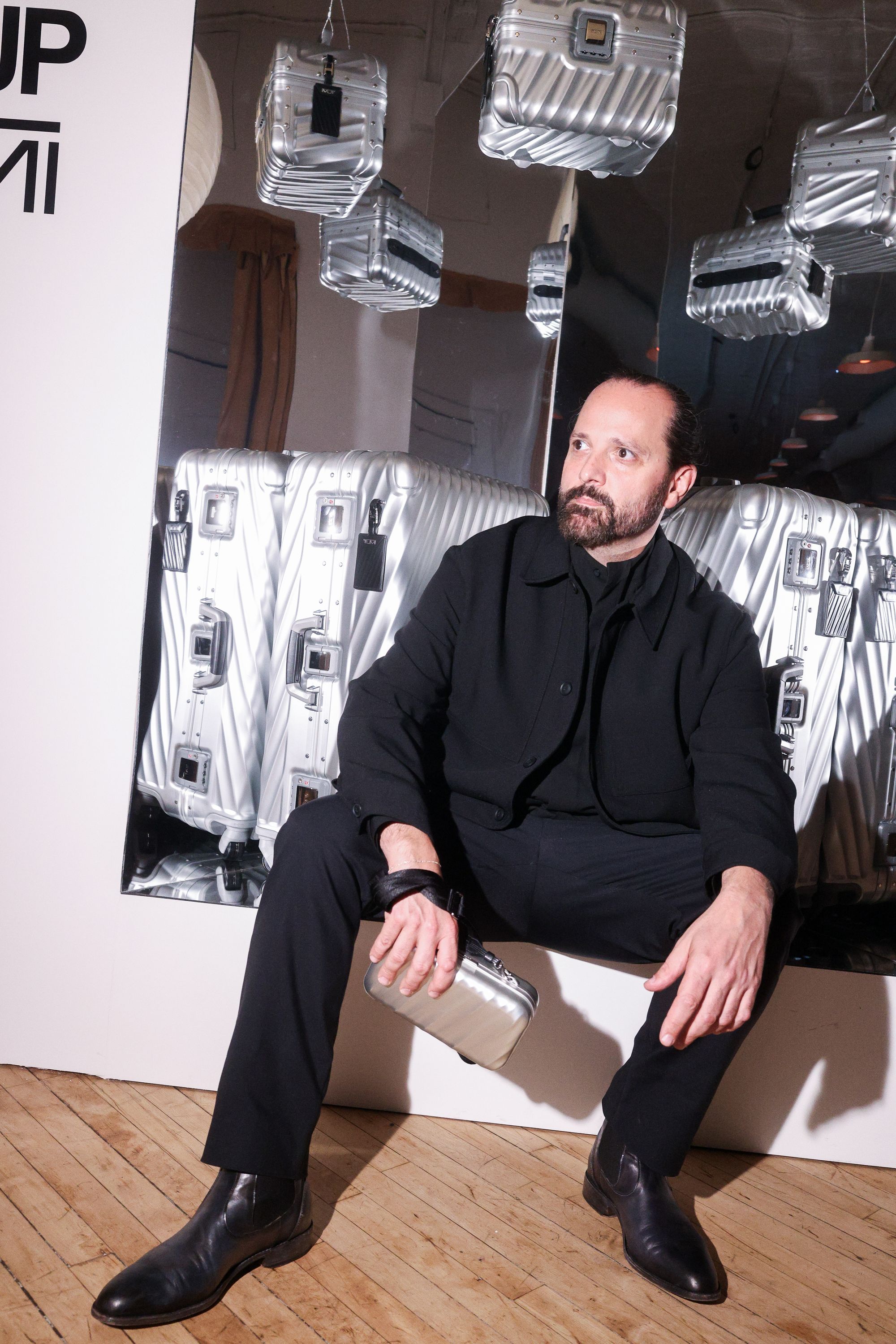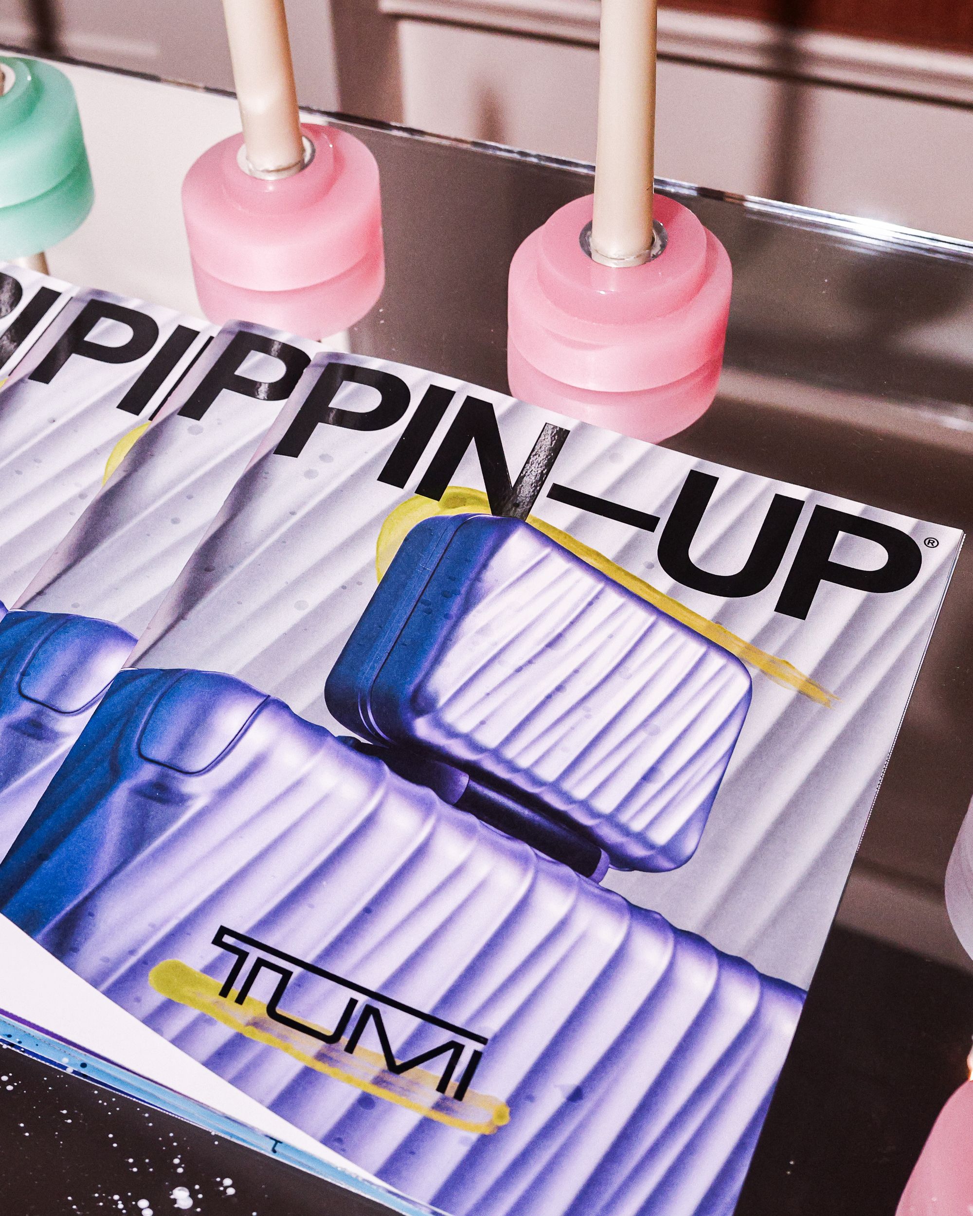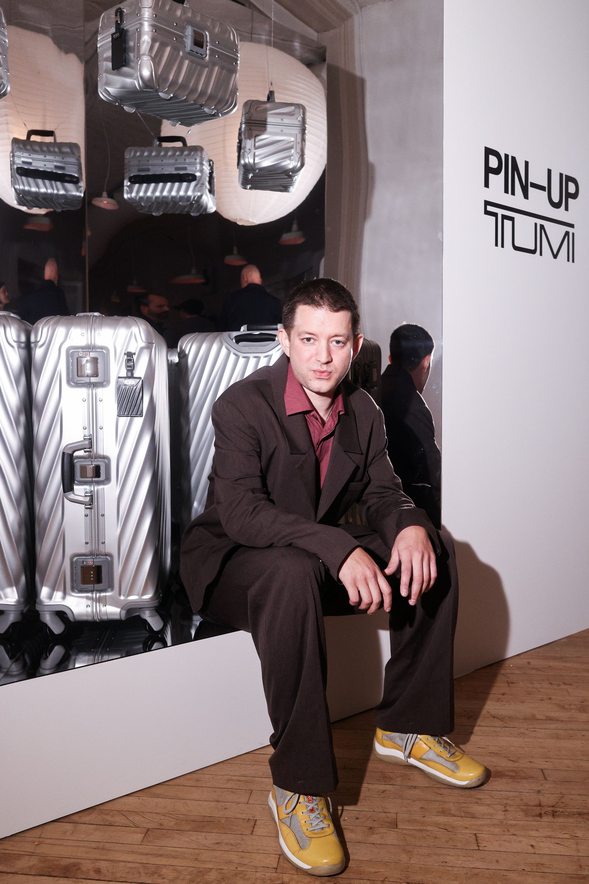 To celebrate the 50-year milestone, PIN–UP teamed up with TUMI for an intimate, 50-guest dinner at 102 Franklin in Tribeca. Guests stepped into an infinity-mirror installation that refracted TUMI’s 19 Degree aluminum collection into a shimmering totem — a playful nod to the infinite permutations of travel. Designed by Victor Sanz, TUMI’s creative director, the 19 Degree line has become one of the brand’s signature expressions, an object that feels as architectural as it is practical.