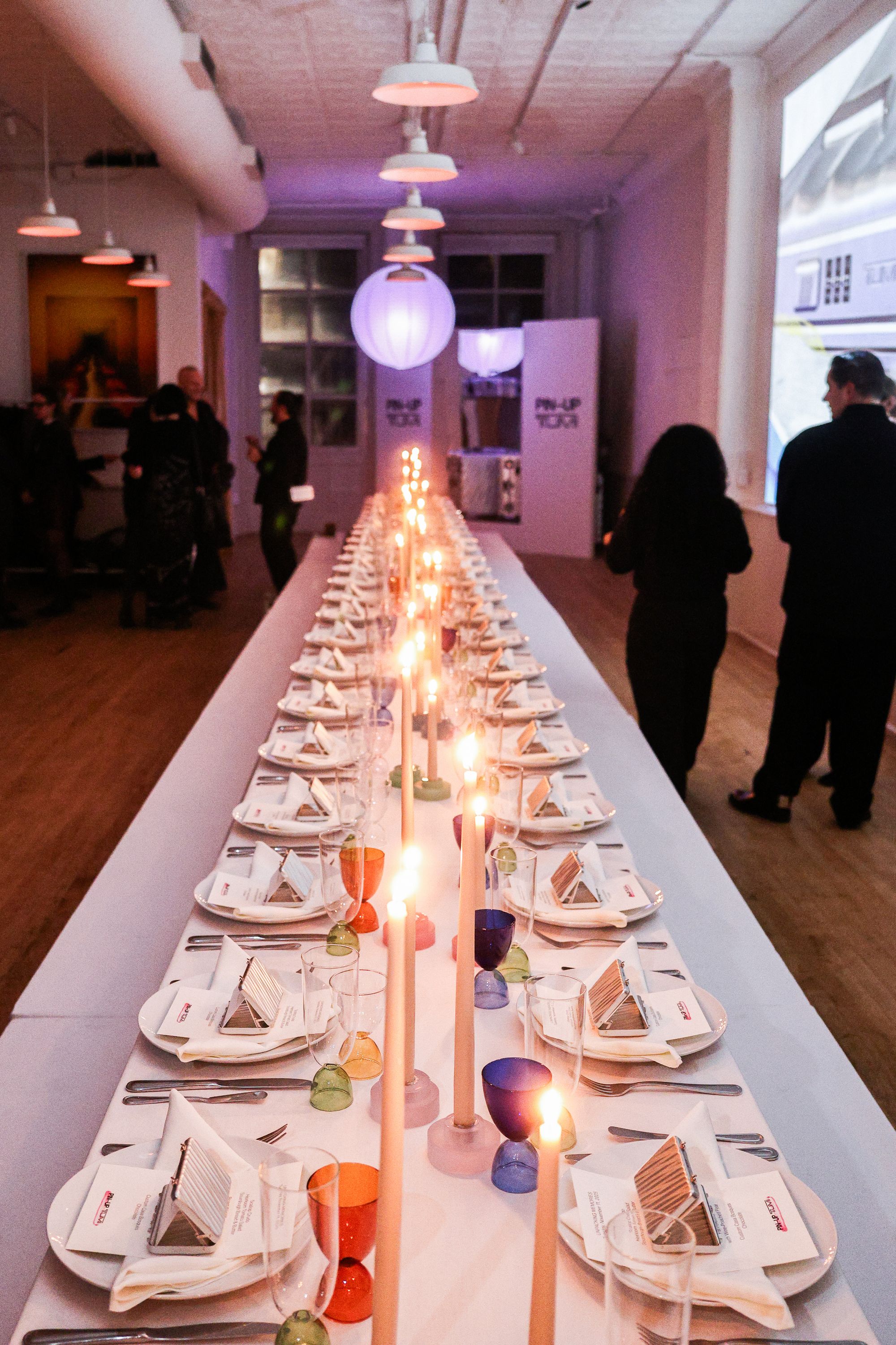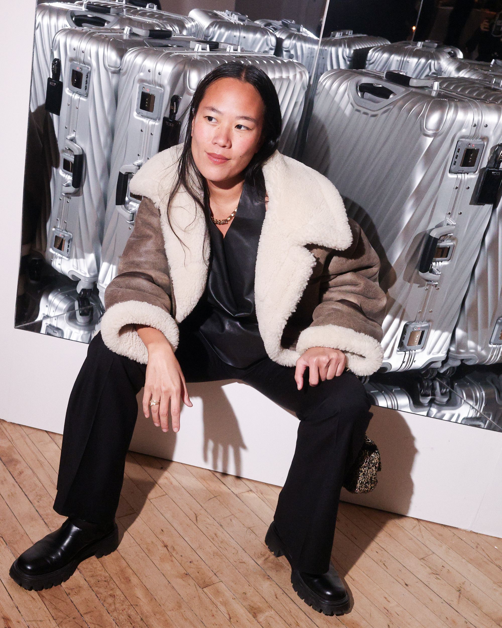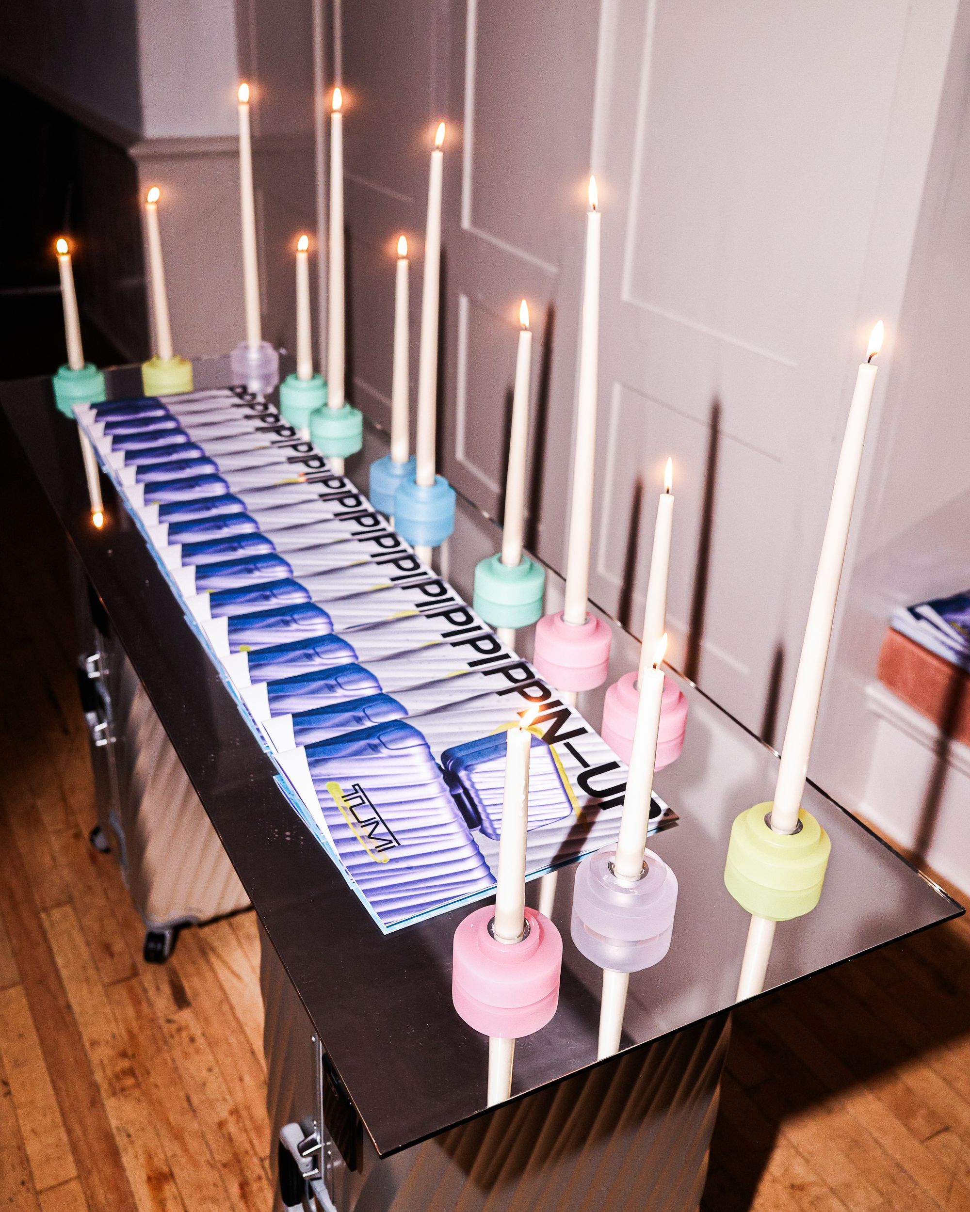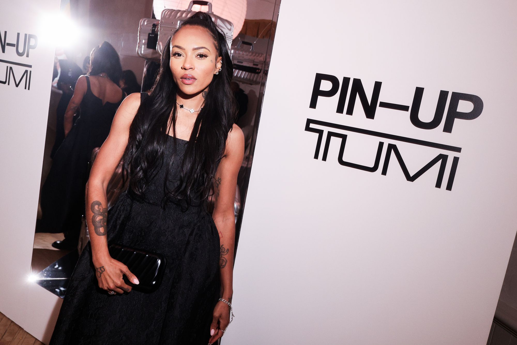 To celebrate the 50-year milestone, PIN–UP teamed up with TUMI for an intimate, 50-guest dinner at 102 Franklin in Tribeca. Guests stepped into an infinity-mirror installation that refracted TUMI’s 19 Degree aluminum collection into a shimmering totem — a playful nod to the infinite permutations of travel. Designed by Victor Sanz, TUMI’s creative director, the 19 Degree line has become one of the brand’s signature expressions, an object that feels as architectural as it is practical.