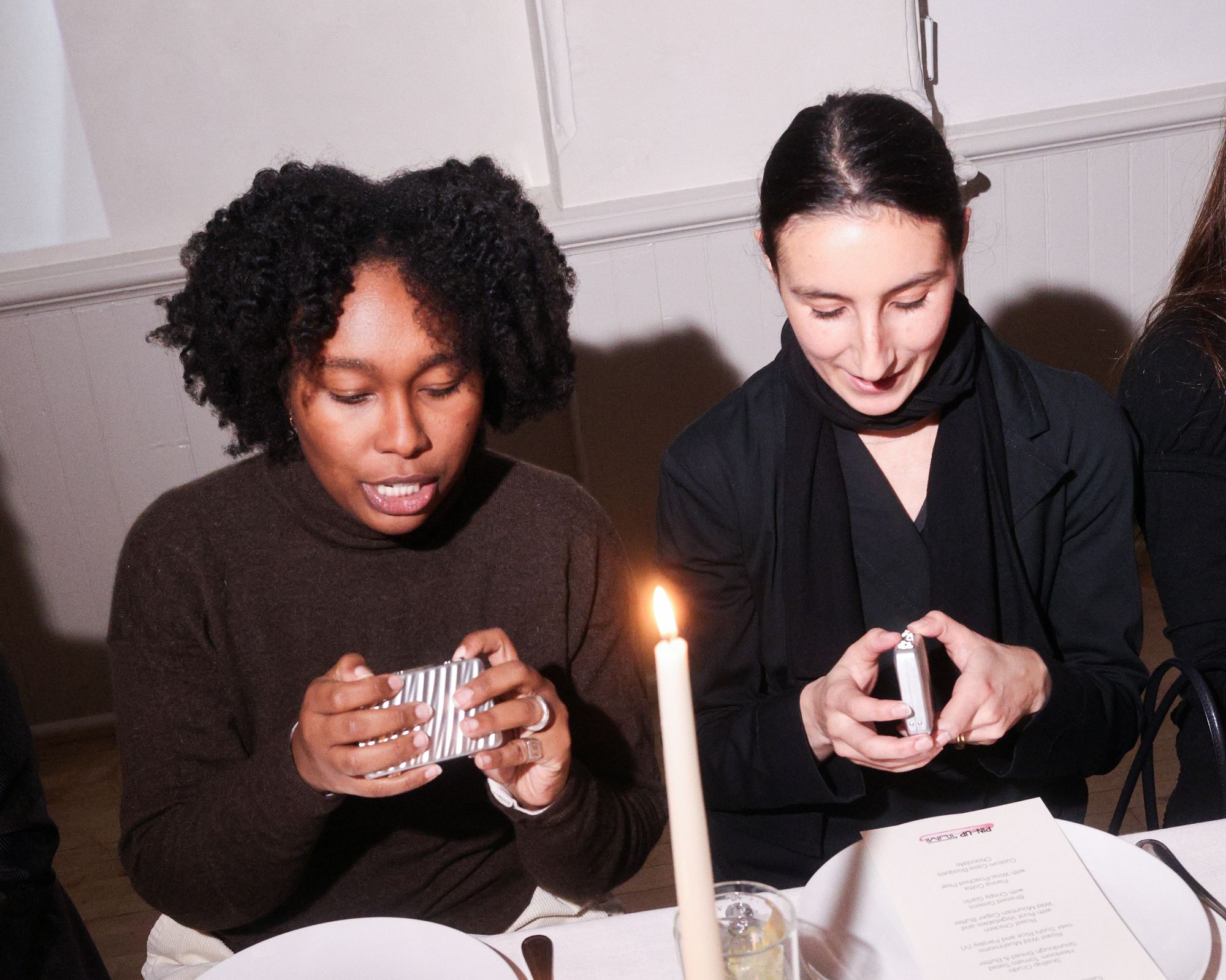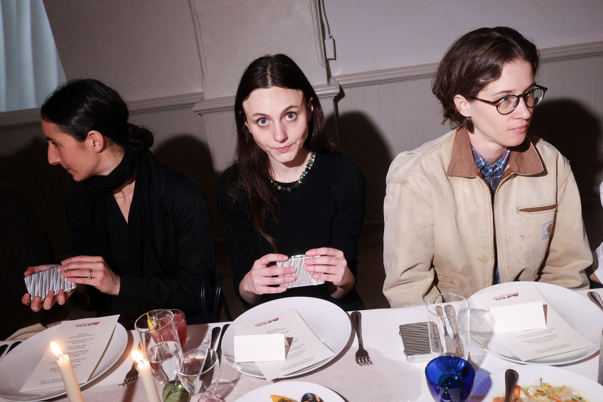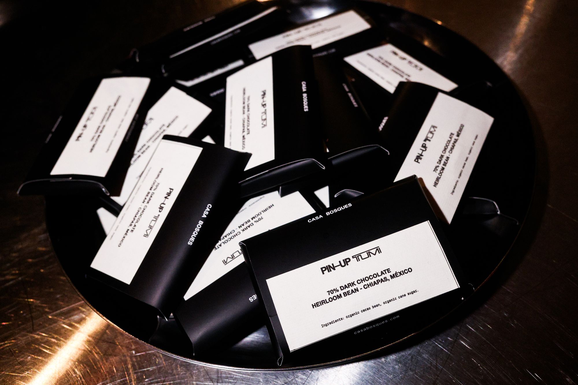 Sanz welcomed guests with a toast to creativity, saluting the evening’s collaborators: PIN–UP creative director Ben Ganz and artist Luke Libera Moore. All around the room, familiar faces from New York’s design, culture, and media spheres settled into the candlelit tables, including Brittany Byrd, Thistle Brown, Raquel Cayre, Mark Grattan, Stefanie Hessler, Deon Hinton, Armand Limnander, Kouros Maghsoudi, Tyler Mazaheri, Beverly Nguyen, Rafael Prieto, Silvia Prada, Taylore Scarabelli, and many more. Meanwhile, dinner unfolded courtesy of chef Arley Marks, whose menu — scallop crudo, heirloom tomato salad, roasted chicken with wild mountain caper butter — turned out to be “actually delicious,” as one delighted (and mildly astonished) guest whispered. Dessert arrived as custom Casa Bosques chocolate bars molded into perfect miniature 19 Degree forms.